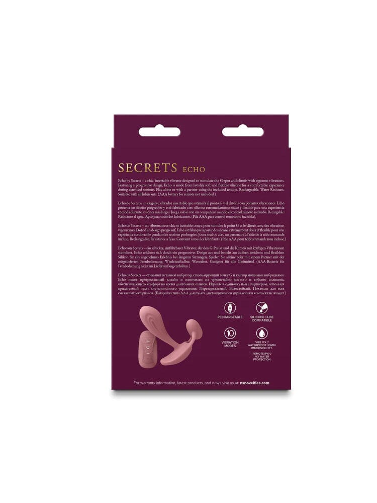 Let your desires resonate with Secrets - Echo, a sleek and sensual vibrator designed to awaken your deepest rhythms. Crafted from ultra-soft, flexible silicone, Echo glides effortlessly against your body, curving perfectly to reach every spot that craves attention. Its progressive shape and powerful motor deliver waves of pleasure that pulse with precision, creating a symphony of satisfaction that lingers long after the final vibration fades.